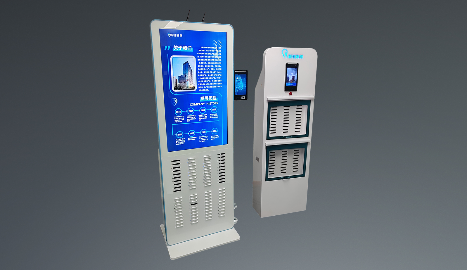 產品外殼采用金屬材質,配備 LED 屏幕、LED 指示燈及人臉識別機于一體,內置控制與通信主板,結合軟件引擎系統??赏ㄟ^定制 APP 或 PC 端遠程管理后臺。