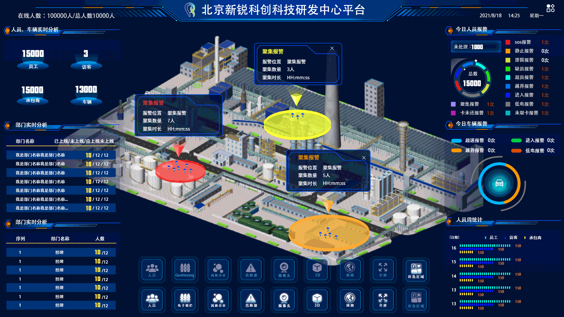 針對油田人員定位的難點,新銳科創推出了北斗RTK+UWB+藍牙融合定位系統。該系統結合了三種定位技術的優勢,實現了室內外無縫覆蓋、高精度定位和實時數據傳輸,為智慧油田建設提供了有力的技術支撐。利用北斗衛星導航系統提供的高精度定位信號,結合UWB技術的高時間分辨率和藍牙技術的低功耗、低成本特點,實現了室內外無縫定位。系統通過部署在油田各區域的無線基站、藍牙信標和UWB信標,以及人員攜帶的定位卡,實時采集人員位置信息,并通過4G網絡上傳至管理平臺。管理平臺對采集到的數據進行處理和分析,生成人員位置分布圖、軌跡回放、事件告警等報表,為管理人員提供決策支持。